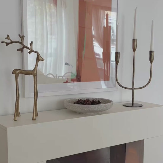 A beautifully handcrafted iron deer ornament finished in elegant gold. Made from durable iron, this sturdy yet stylish sculpture is perfect for adding a festive shimmer to your mantelpiece, shelf, or side table this holiday season. Designed for lovers of nature inspired décor, this handcrafted gold reindeer combines modern design with quality craftsmanship to bring a refined, festive look to your home. Its detailed finish and sleek shape make it an ideal decorative deer figurine addition to any Christmas home décor, whether you prefer classic or contemporary styles. The Malva Iron Gold Deer is versatile enough to complement a variety of rooms and settings: from living rooms and dining areas to entryways. Use it as a Christmas centerpiece, part of a seasonal display, or as a standout piece alongside other gold animal ornaments and metal deer statues. This luxury home decor deer also makes a perfect gold deer ornament for mantelpiece to enhance your holiday atmosphere.